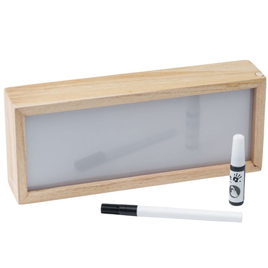 The Baby Art Light Box is a stylish decorative piece designed to create lasting memories of your child's early years. It features a white and black light box with a square frame made of light wood.