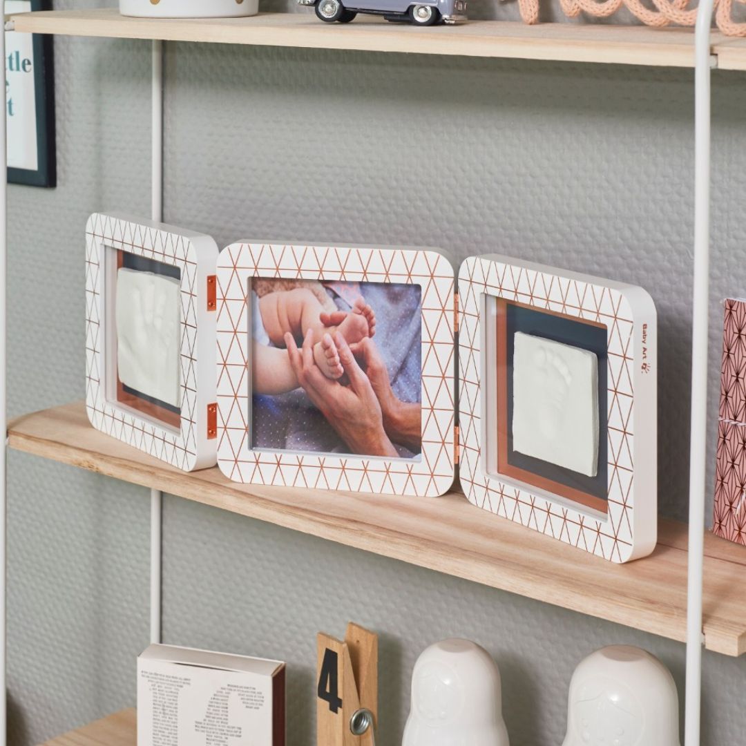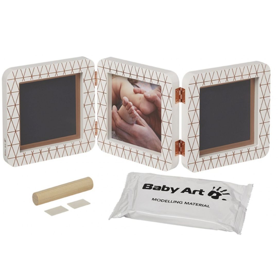 The Baby Art My Baby Touch 2Print Copper Edition is a double print frame designed to create a beautiful keepsake of your baby's early moments. This frame allows you to combine a cherished photo with an impression of your baby's hand or foot.