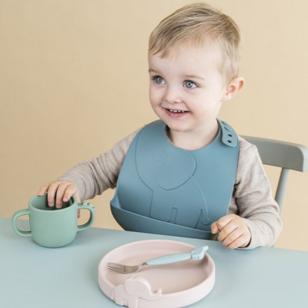 The Done by Deer Peekaboo Bib 2-Pack Elphee Blue is a thoughtfully designed mealtime accessory aimed at making eating fun and mess-free for young children. Featuring the charming Elphee character, these silicone bibs are waterproof and easy to maintain, ensuring a clean dining experience. These bibs are soft and comfortable for little ones to wear, with adjustable poppers that provide a secure fit.
