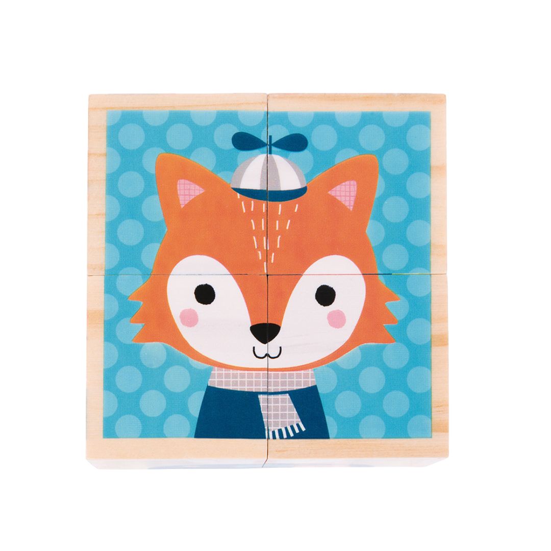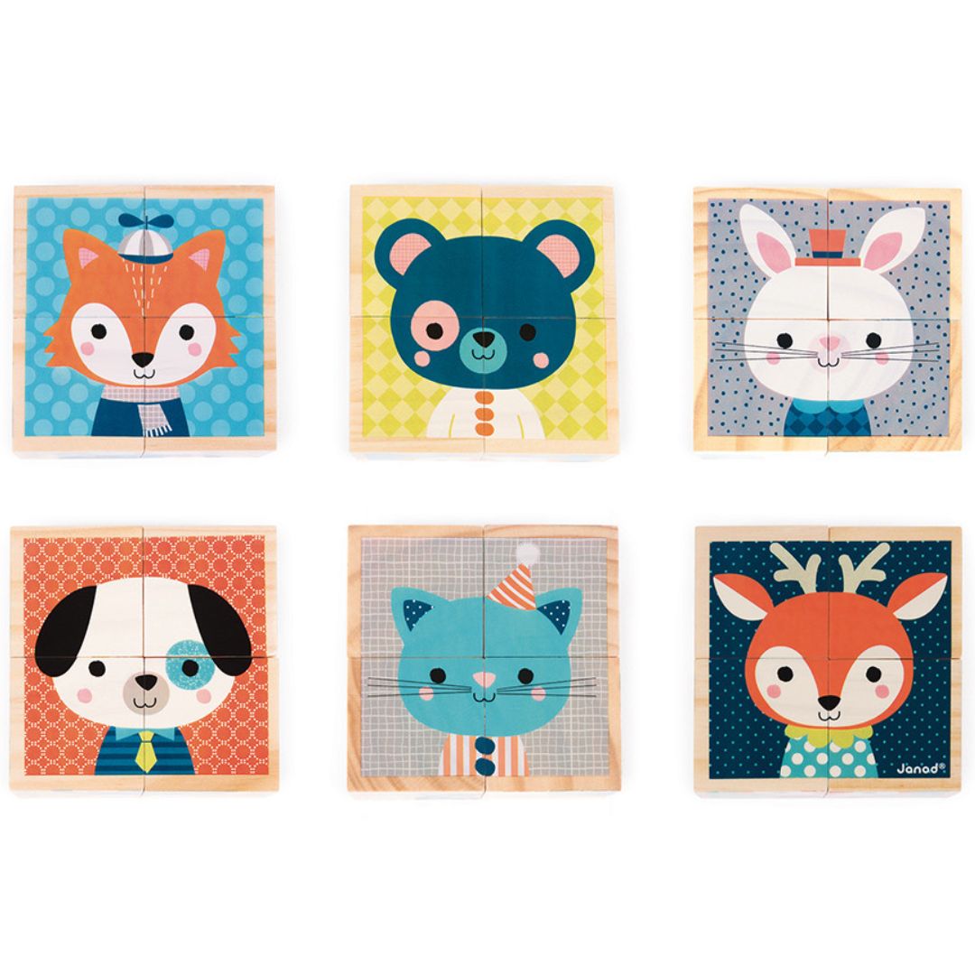 The Janod My First Blocks Forest Portraits is a construction game designed for young children, featuring solid wood cubes that promote coordination and observation skills through playful animal illustrations.