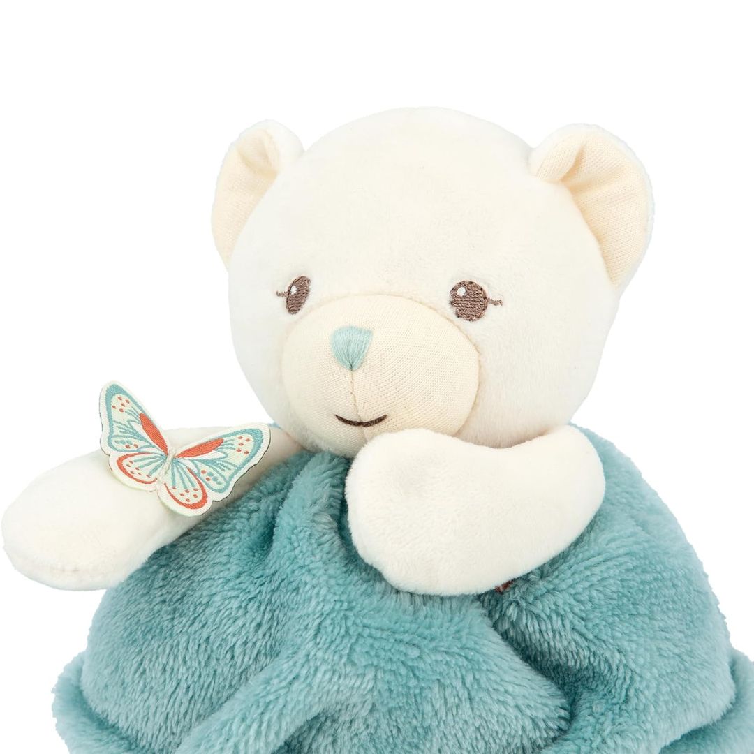Kaloo Plume Bubble of Love Green Bear is a very soft teddy bear measuring 23 cm, designed as a comforting companion for newborns and older. Its adorable shape and features make it easy for little hands to grip, while its friendly smile invites cuddles.