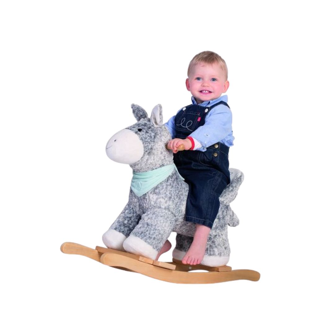 The Kaloo Rocking donkey is a delightful addition to the Friends of KALOO range. The sturdy rocking system and attractive wooden handles enhance the overall experience, while its soft appearance makes it a cuddly companion.