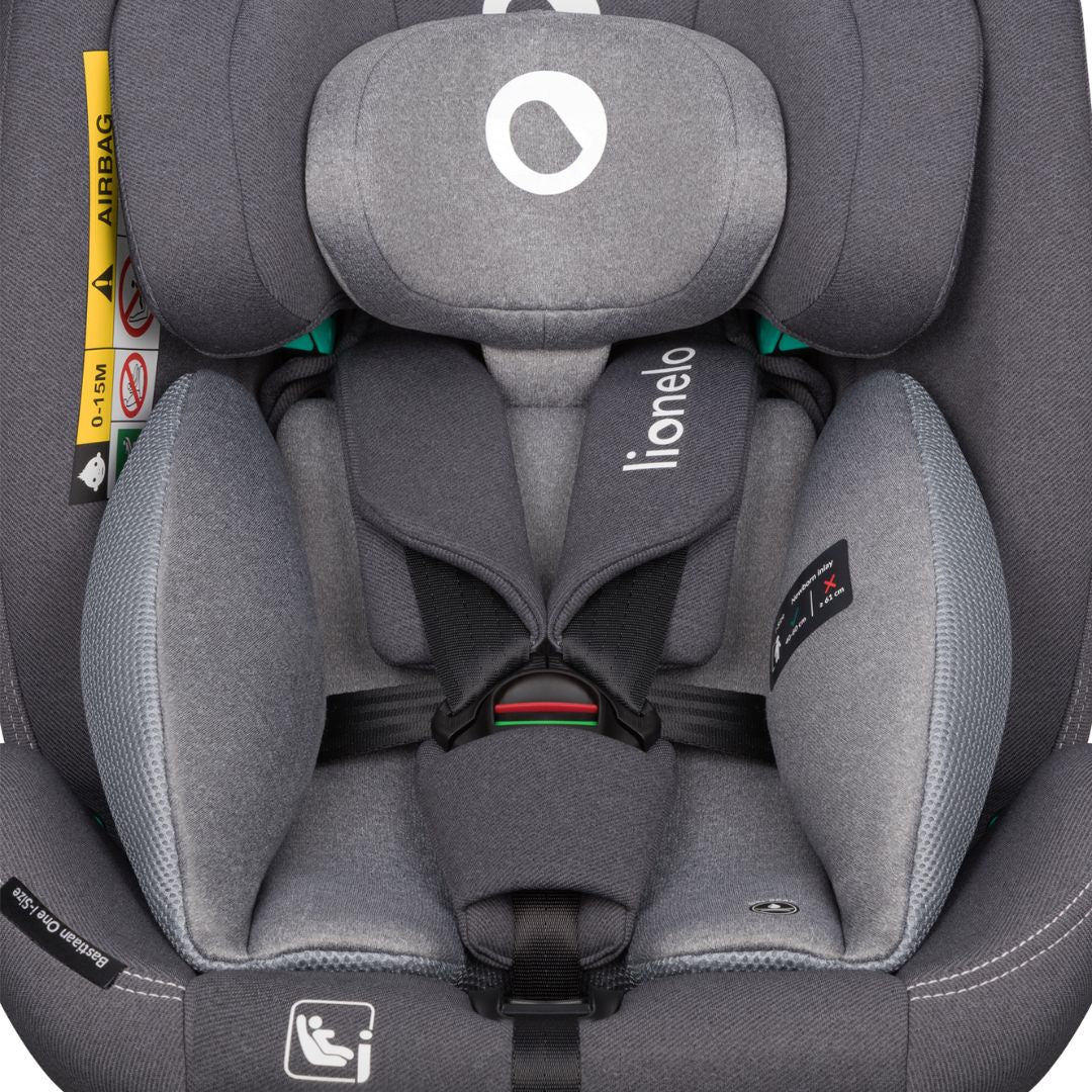 The Lionelo Bastiaan One i-Size Car Seat in Grey is designed for children aged 40 to 150 cm, featuring top safety standards and flexible installation options.