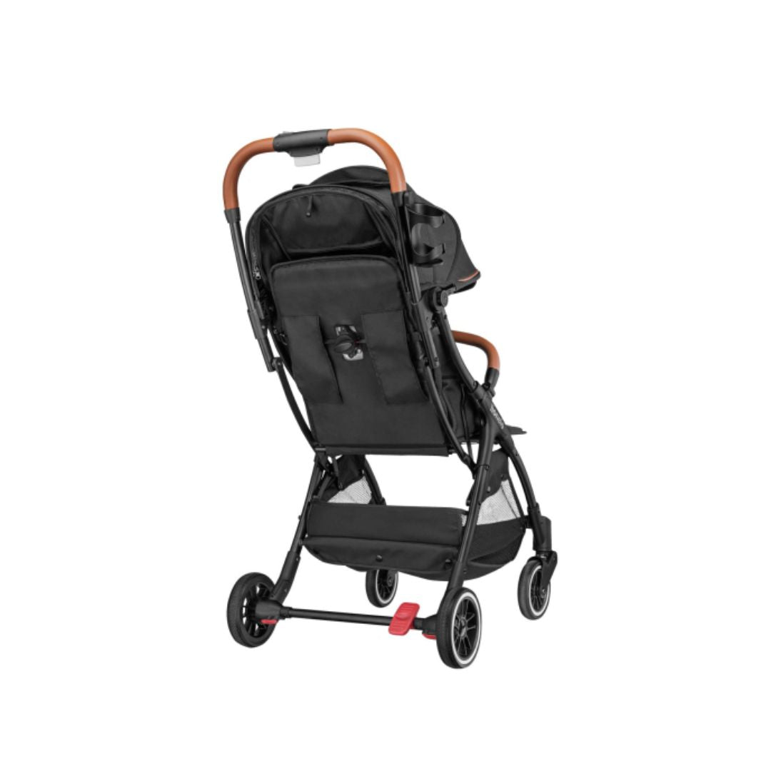 - Extended canopy with a viewing window for sun protection