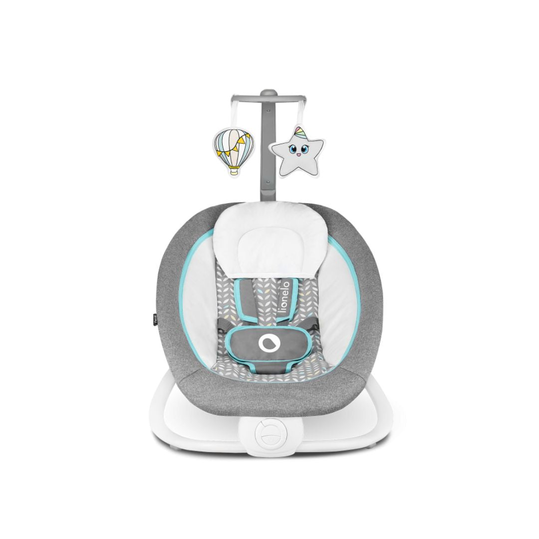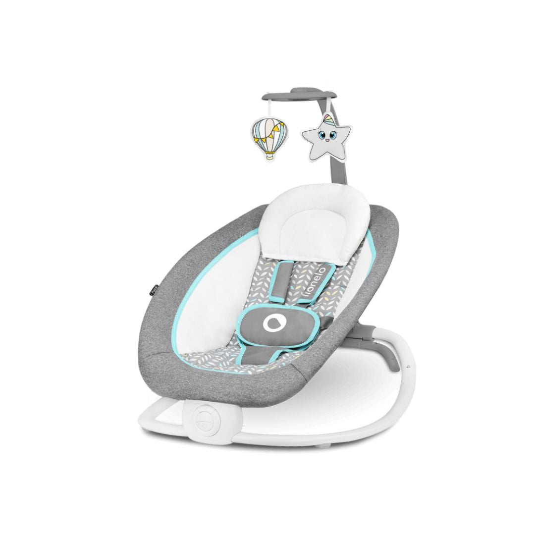 The Lionelo Pascal Grey Scandi Bouncer-Rocker combines comfort and safety for babies up to 9 kg. Its natural rocking system adapts to your child's movements, featuring a 3-step backrest adjustment and 12 soothing melodies with gentle vibrations to calm them.