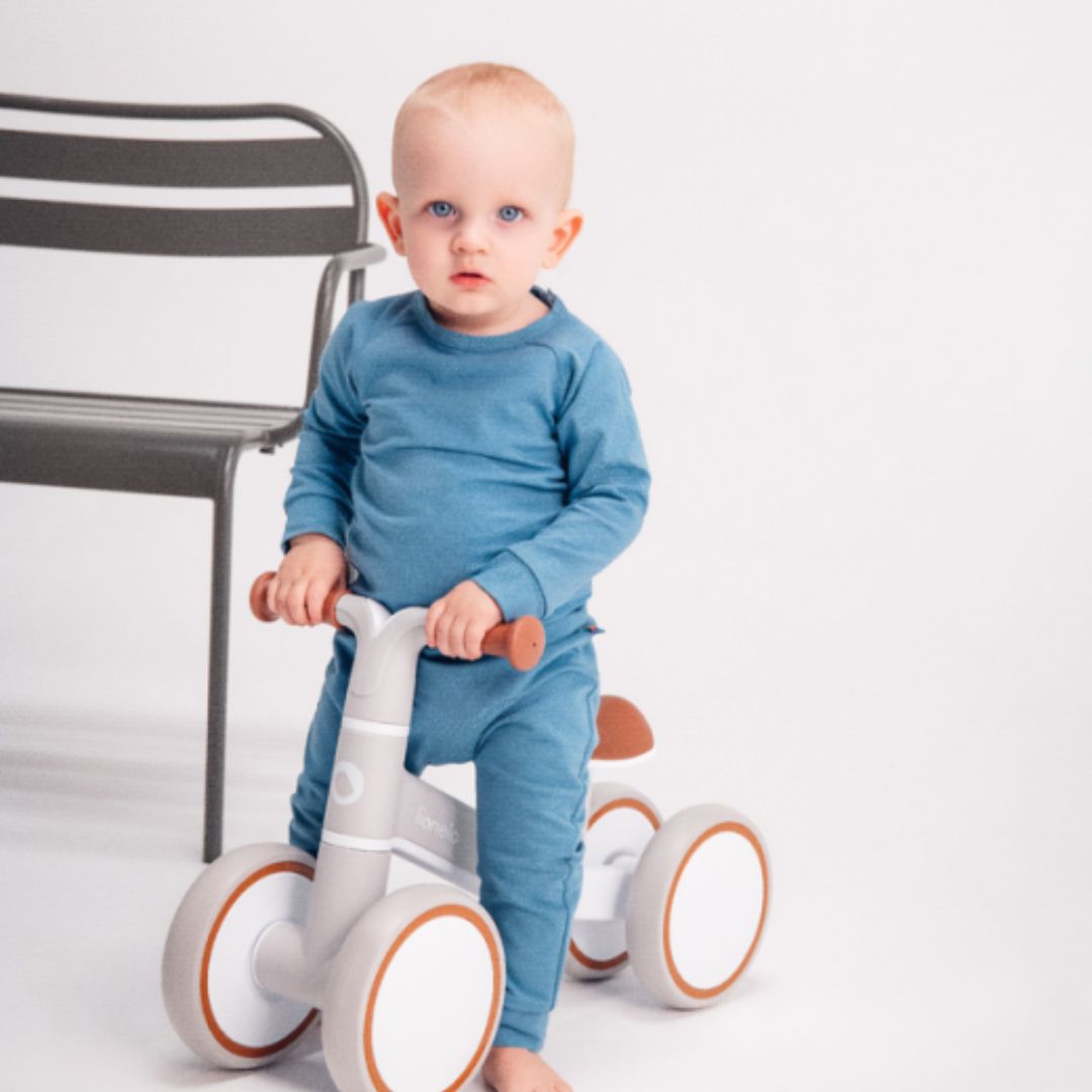 The Lionelo Villy Balance Bike is designed for children aged 1 and up, featuring shock absorption and a stable four-wheel configuration that enhances safety and comfort during rides. This four-wheeled bike is perfect for exploration and supports the development of coordination and motor skills, making it suitable for both indoor activities and outdoor adventures.