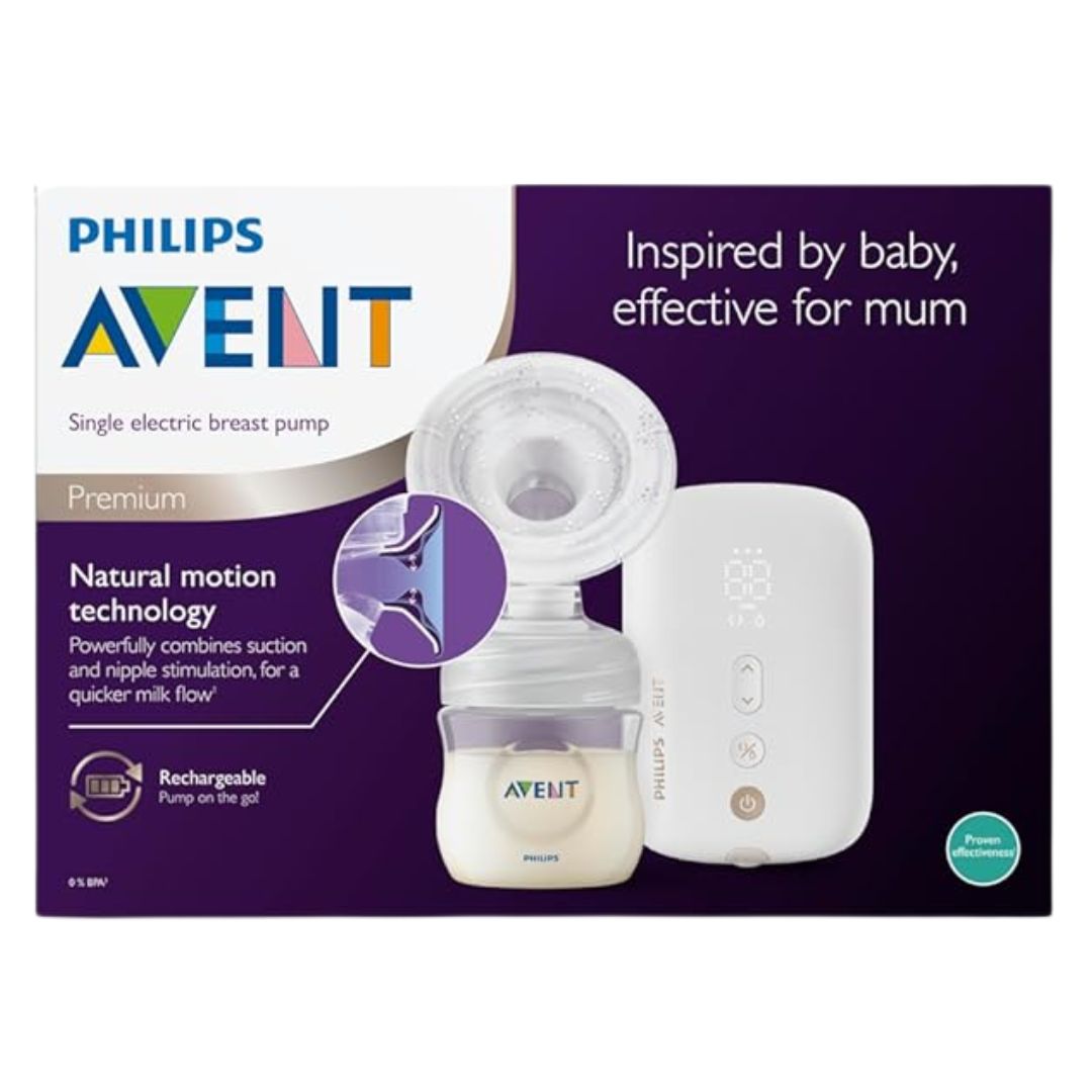 The Philips Avent Electric Breast Pump offers a new era of expression, combining effective suction and nipple stimulation inspired by a baby's natural drinking rhythm. Its soft cushion adapts to various nipple sizes, ensuring a comfortable pumping experience.