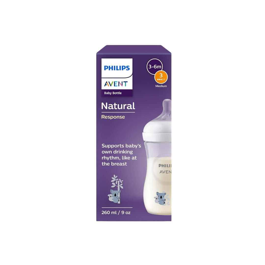 Philips Avent Koala Natural Response Baby Bottle is designed to support your baby's individual drinking rhythm, making it easy to combine breastfeeding with bottle feeding. The unique Natural Response Nipple releases milk only when the baby actively drinks, mimicking the natural breastfeeding experience.