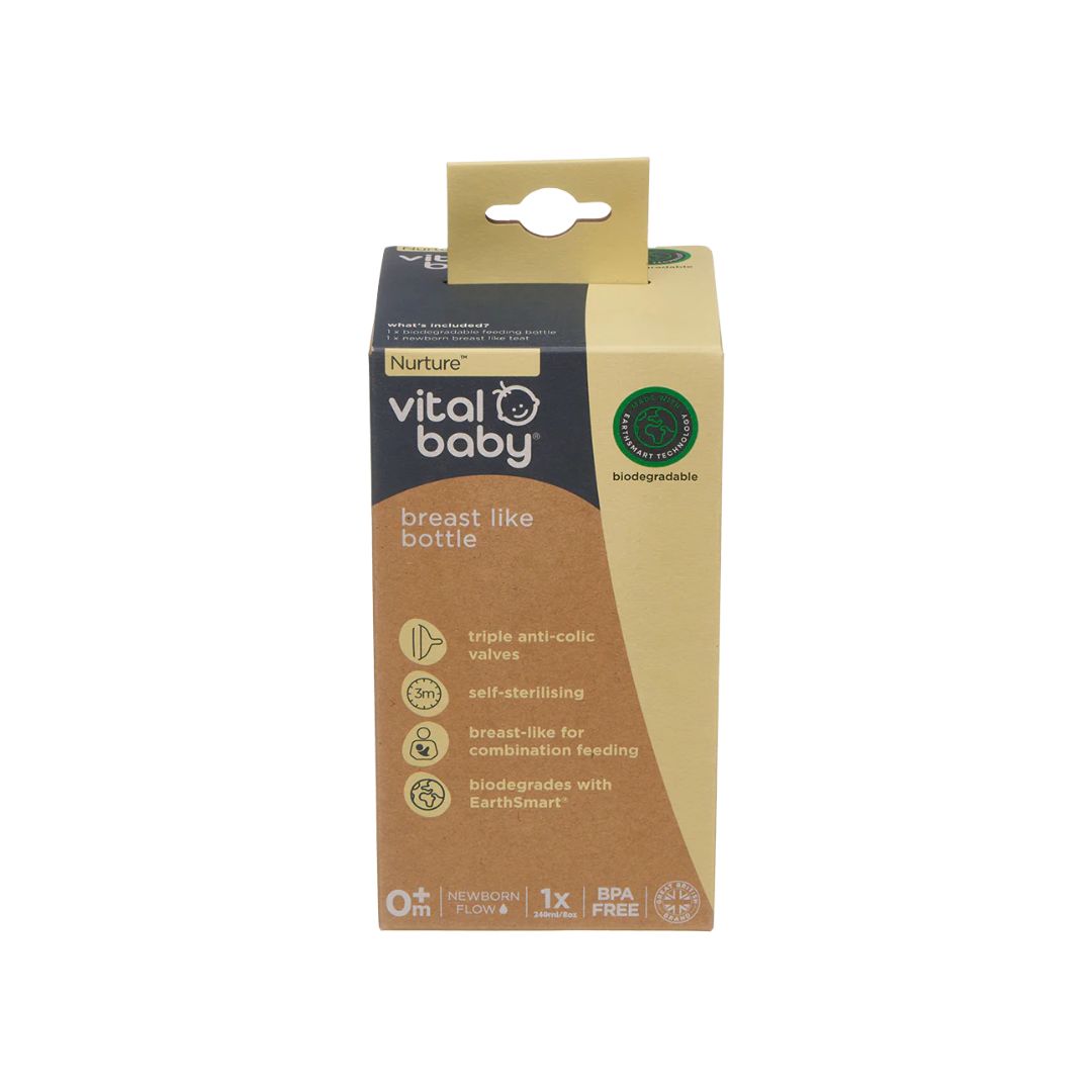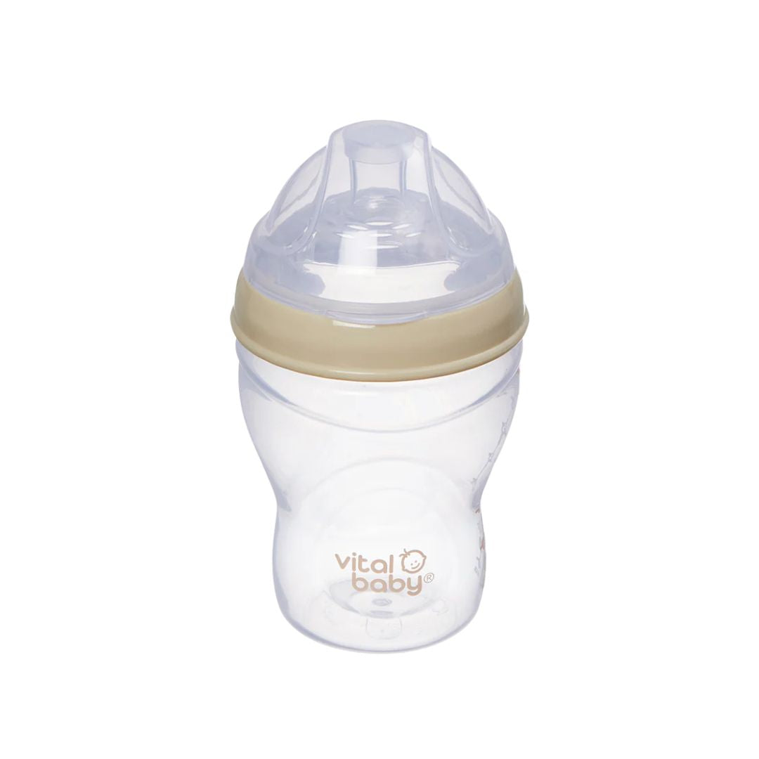 The Vital Baby A 240ml breast-like baby bottle designed to support natural latching and seamless transition between breast and bottle, with anti-colic technology, Flexzone™ movement, and self-sterilising functionality.