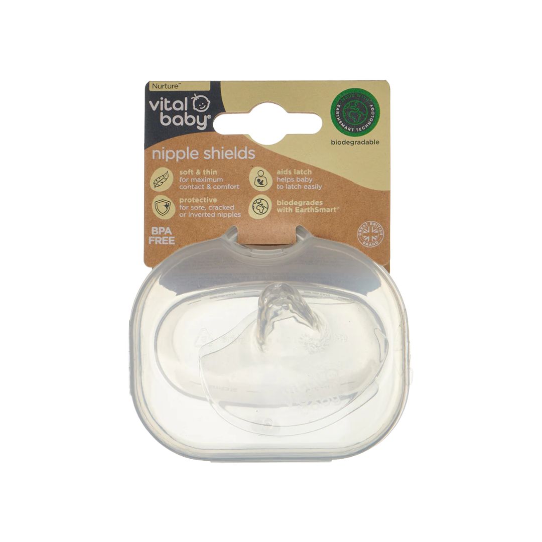 The Vital Baby Nipple Shields with Protective Case – 2 Pack is Made from 100% ultra-thin, skin-feel silicone, Vital Baby Nipple Shields provide gentle protection for sore or sensitive nipples without interrupting breastfeeding. Designed for comfort, bonding, and ease of use.